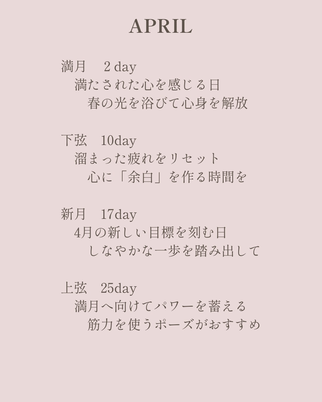 2026.04 Moon Rhythm Calendar | tukino *ヨガウェア*