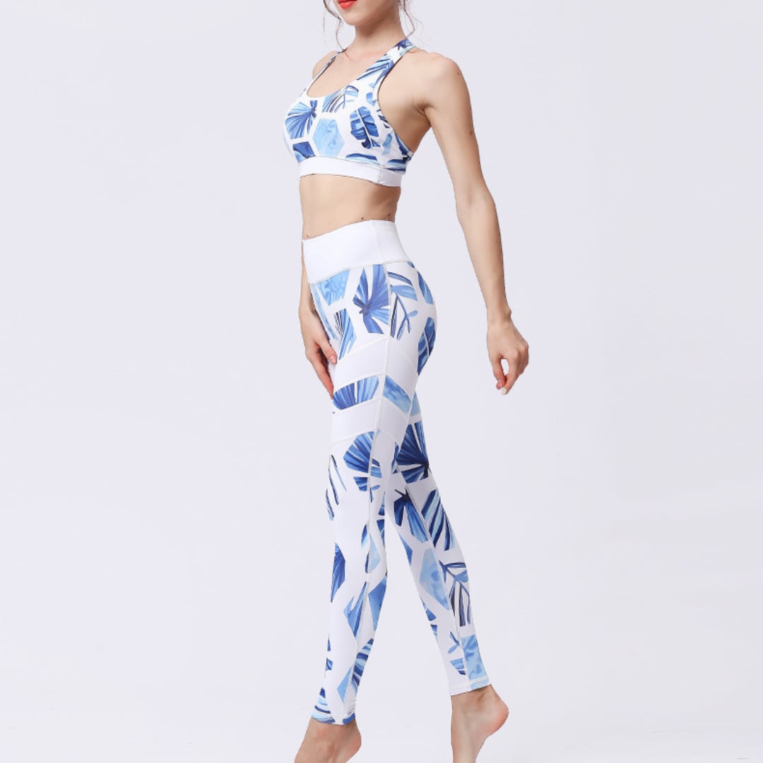 ボタニカル ヨガウェア Blue × white