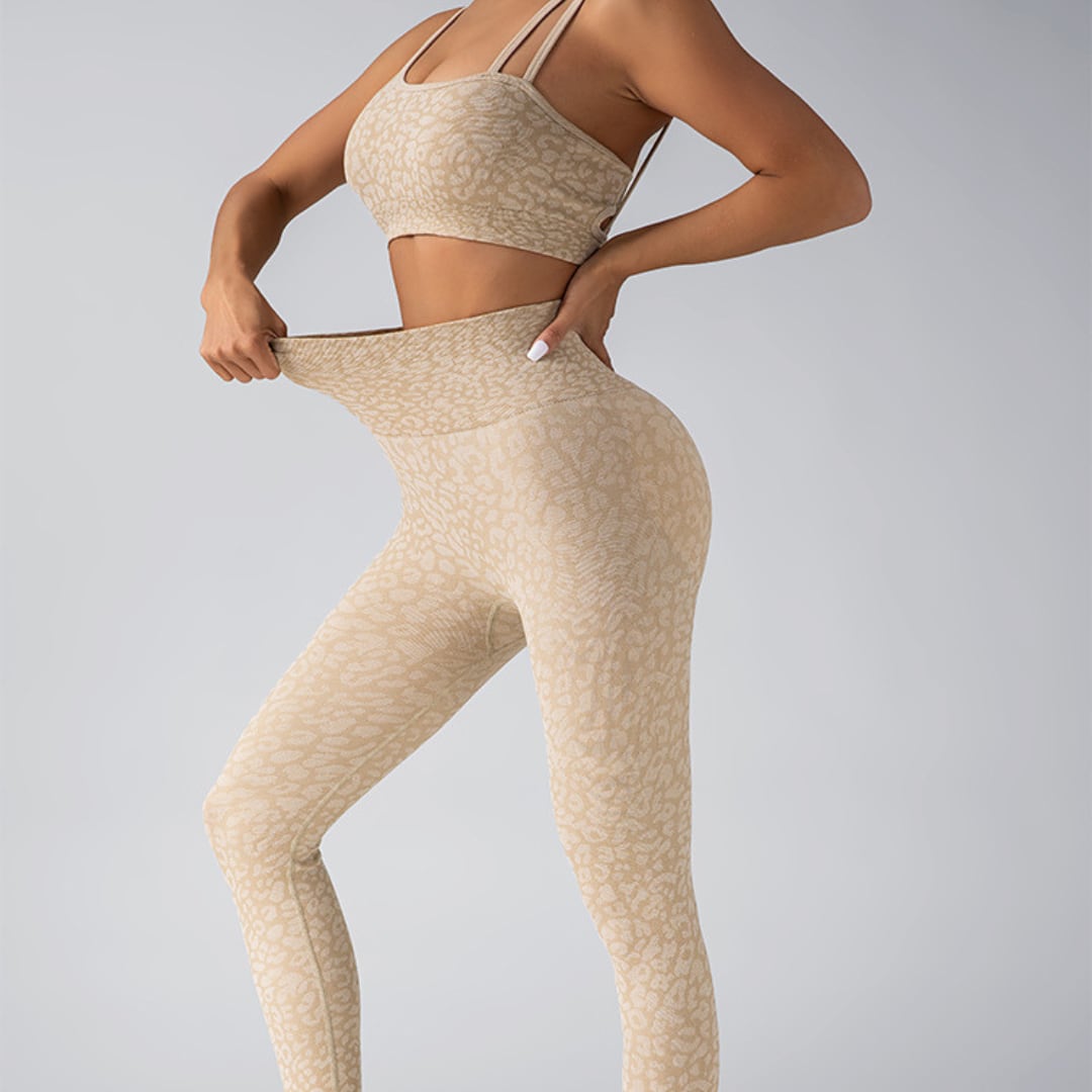 ヒョウ柄 ヨガウェア 美バックトップス オフホワイト