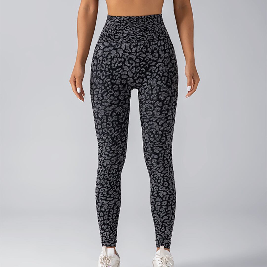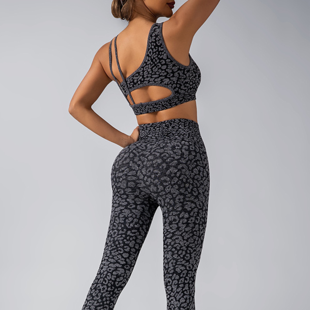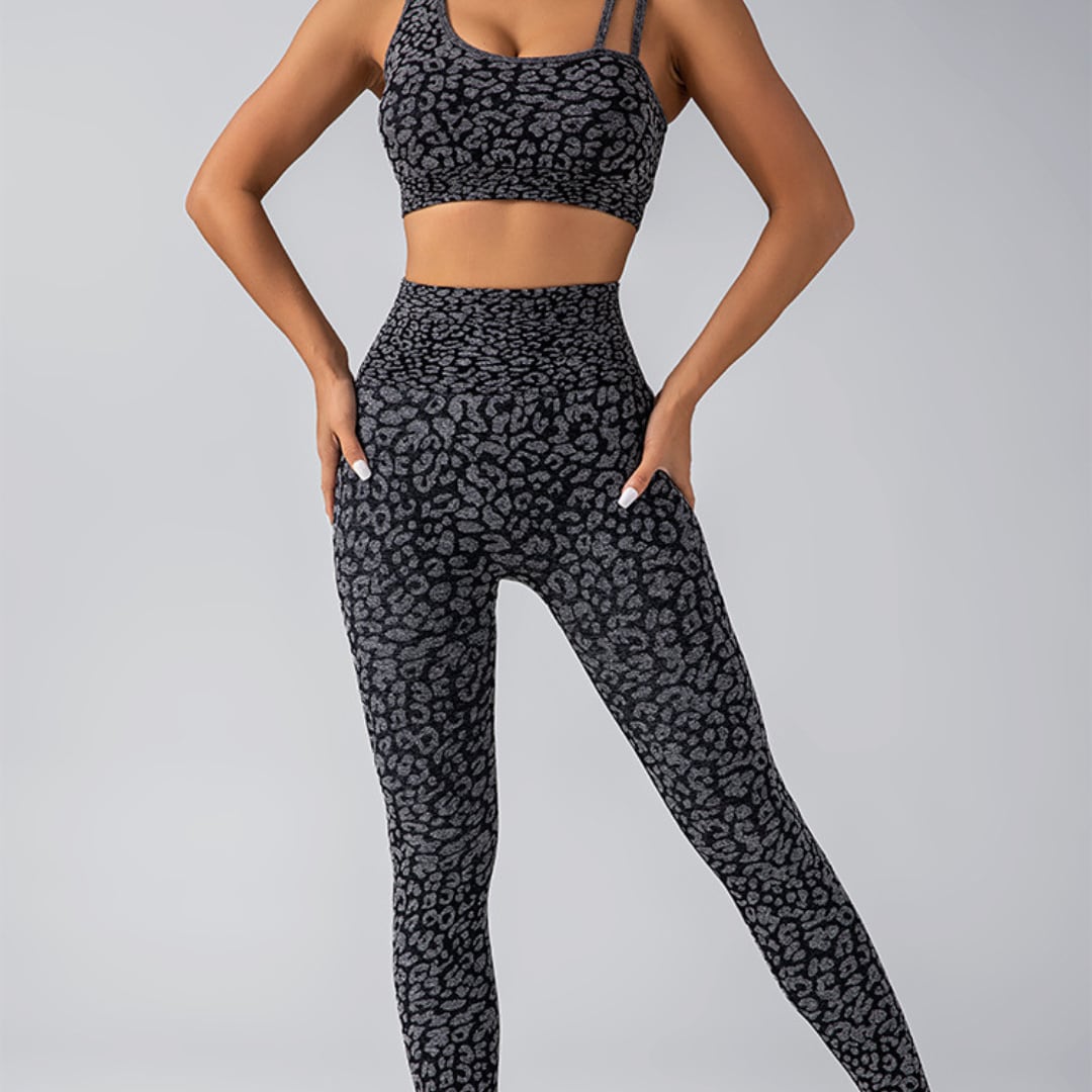 ヒョウ柄ヨガウェア 美バックストラップ ハイウエストパンツ ブラック